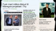 Continue reading …LANDBRUG – Fusk med million-tilskud til Månegris-projektet i Thy. Frontfiguren melder fra og siger, han blot har været »stråmand« for andre, selv om både miljøtilladelse og milliontilskud er søgt og bevilget i hans navn. Mystikken breder sig om det lokalt forhadte Månegris-projekt i Thy, efter at frontfiguren har meldt fra. Det er gårdejer Niels Jørgen [...]