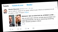 Continue reading …FISKERI – Det kostede skatteyderne næsten 30 millioner at redde Esben Lundes ministerliv. Selv en blind kan se, at Esben Lunde Larsen hang i en meget tynd tråd, erkender Venstres Jakob Ellemann-Jensen. »Lad os kalde en spade for en spade. Løkke brugte millioner af skattekroner på at redde Lundes ministerliv.« Sådan skriver Socialdemokratiets politiske ordfører Nicolai [...]