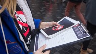 SKIFERGAS: I iskold aftenvind og med jubelråb fra lokale demonstranter begyndte Greenpeace-aktivisterne i Totals boretårn mandag aften at rulle et 15 meter langt banner ud. ‘Stop fracking’, står der nu ned langs boretårnet. De fire aktivister øverst i tårnet efter 16 timers protest i gang med at montere det blafrende banner. Der er fortsat 17 [...]