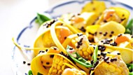 Continue reading …MAD – Majs og marinerede mirabeller er hovedingredienserne i denne solskinssalat, som er holdt i gule nuancer. Prøv også med saltsyltede citroner. De er en velsignelse i køkkenet med deres helt specielle syrligt/salte smag. Af Kirsten Skaarup, forfatter Det er højsæson for majs – og mirabeller(!) Mirabellerne nærmest drysser ned i hovedet på mig i [...]