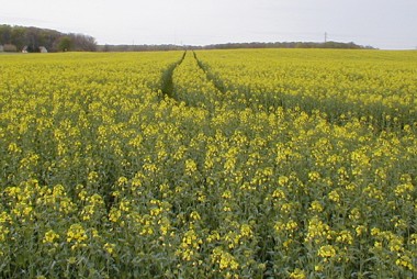 En rapsmark med tydelige spor efter marksprøjten. Foto: Ulla Skovsbøl